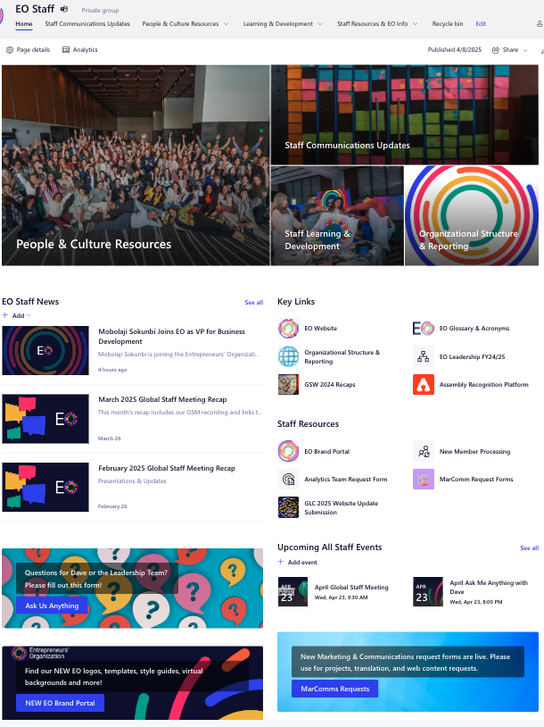 I designed the first-ever employee intranet site for an organization with employees in 20 countries.