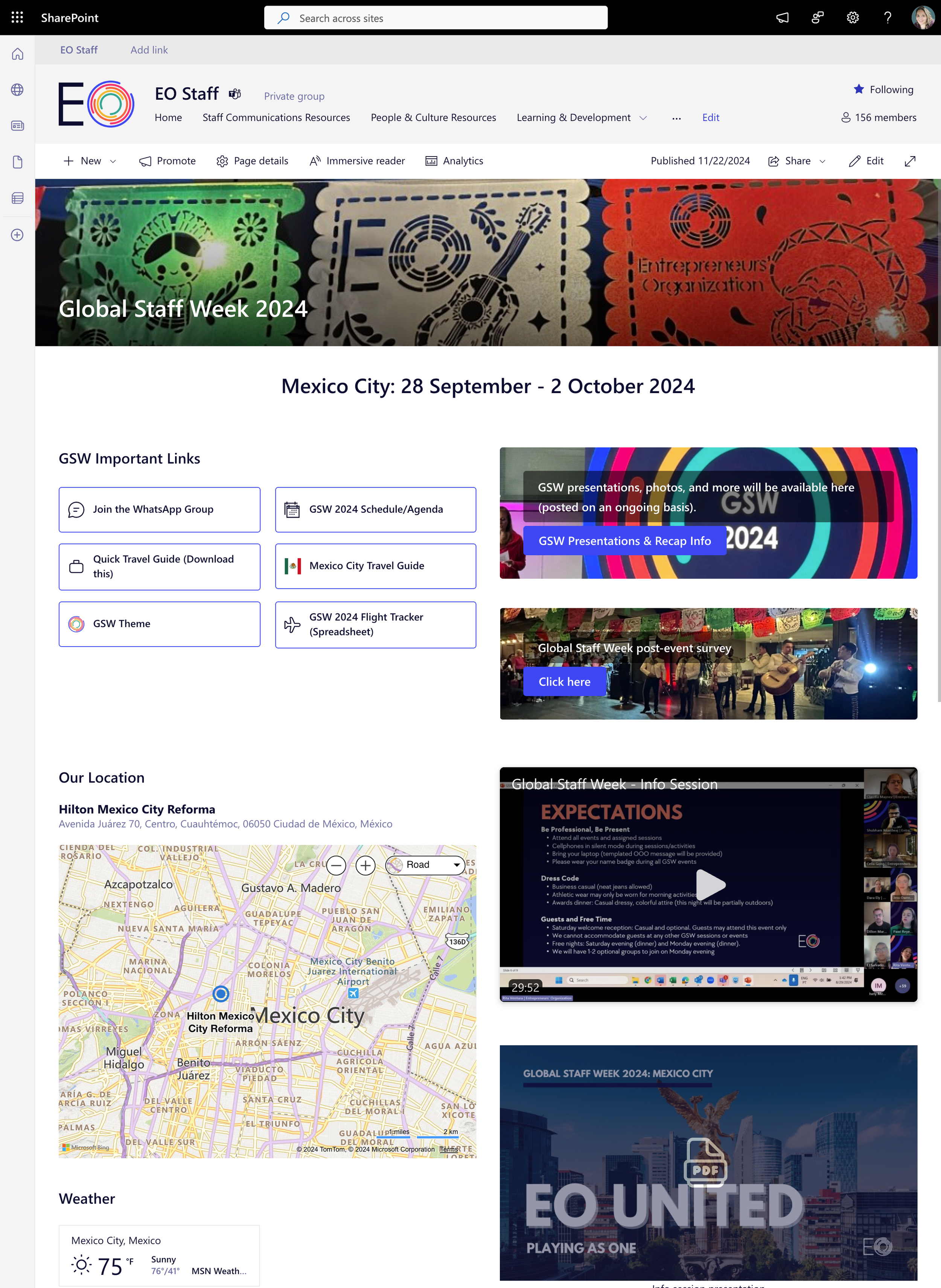 Home page for full-company offsite in Mexico City, providing critical travel and event details led to a 95% “very satisfied” rating for event communications